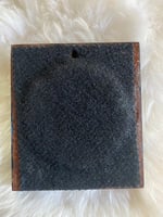 He's tucked into a vintage wooden frame that I have painted a sueded black with blue/gray trim. There is a hanging hole in the back for your hanging pleasure.